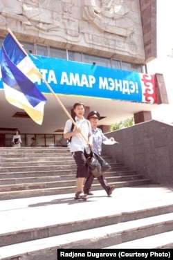 Раджана Дугарова во время акции протеста