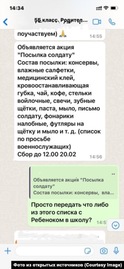 На дверях дошкольных учреждений стали вешать рекламу контрактной службы. В родительских чатах публикуют фотографии отцов, которые сейчас находятся в Украине. Потом настало время открыток и гуманитарной помощи фронту. Родителям присылают целые списки необходимых для военных вещей и продуктов: от мешков для мусора и скотчей до электрических чайников, от мужских трусов и носков до верхней одежды, и, конечно, продукты питания.