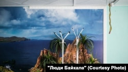 Кафе в посёлке Нижнеангарск – самой северной точке Байкала. Фотообоями с видами природы, цветами обычно украшают стены в деревенских домах и кафе.